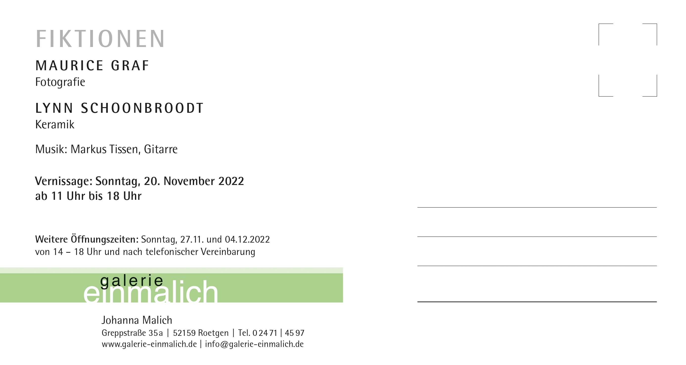 Vernissage: Sonntag, 20. November 2022 ab 11 Uhr bis 18 Uhr
